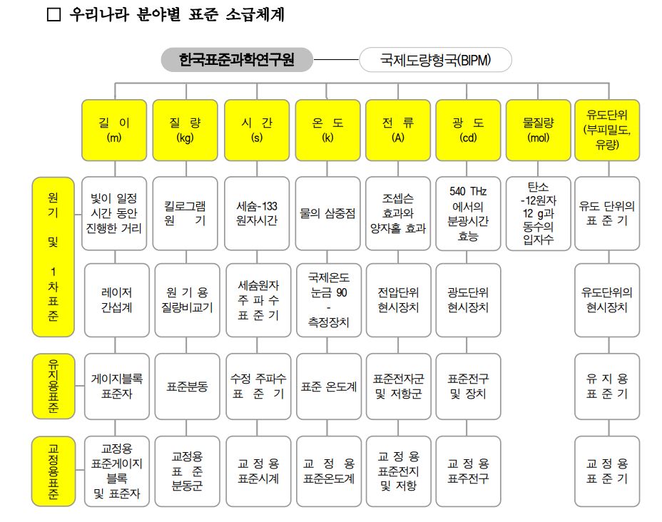 결국 어떤 단위계를 측정하기 위한 기기들은 모두 상위 표준기기로 비교측정을 해야 한다는 뜻이다.