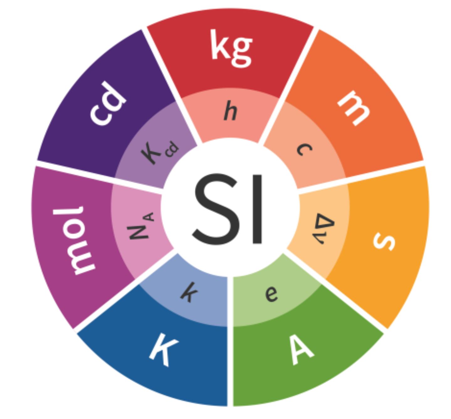 여기서 C은 As와 같고, 초(기호:s)는 Δ ν Cs를 통하여 정의된다. 켈빈(기호:K)은 열역학 온도의 SI 단위이다.