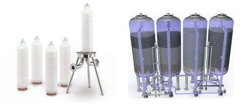 일반적으로 10um, 5mu, 1um, 0.22um(제균용) 규격의 필터를 처리 유량에 적합한 구간에 설치한다.