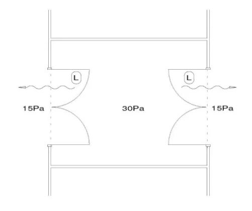 Sink와 반대로 청정도가 높은 중간(30pa)과 양쪽의 압력차로 양(+)압실을 만든다.