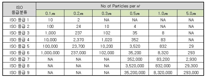 ISO14644-1에서는 실 별 청정도를 나누어 관리하도록 청정도 기준을 권고한다.